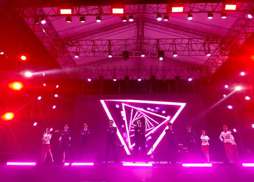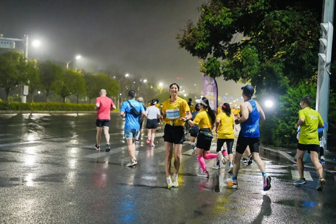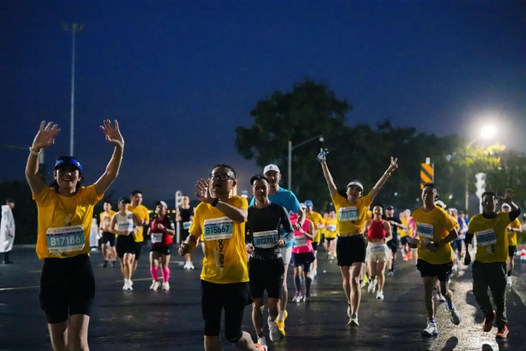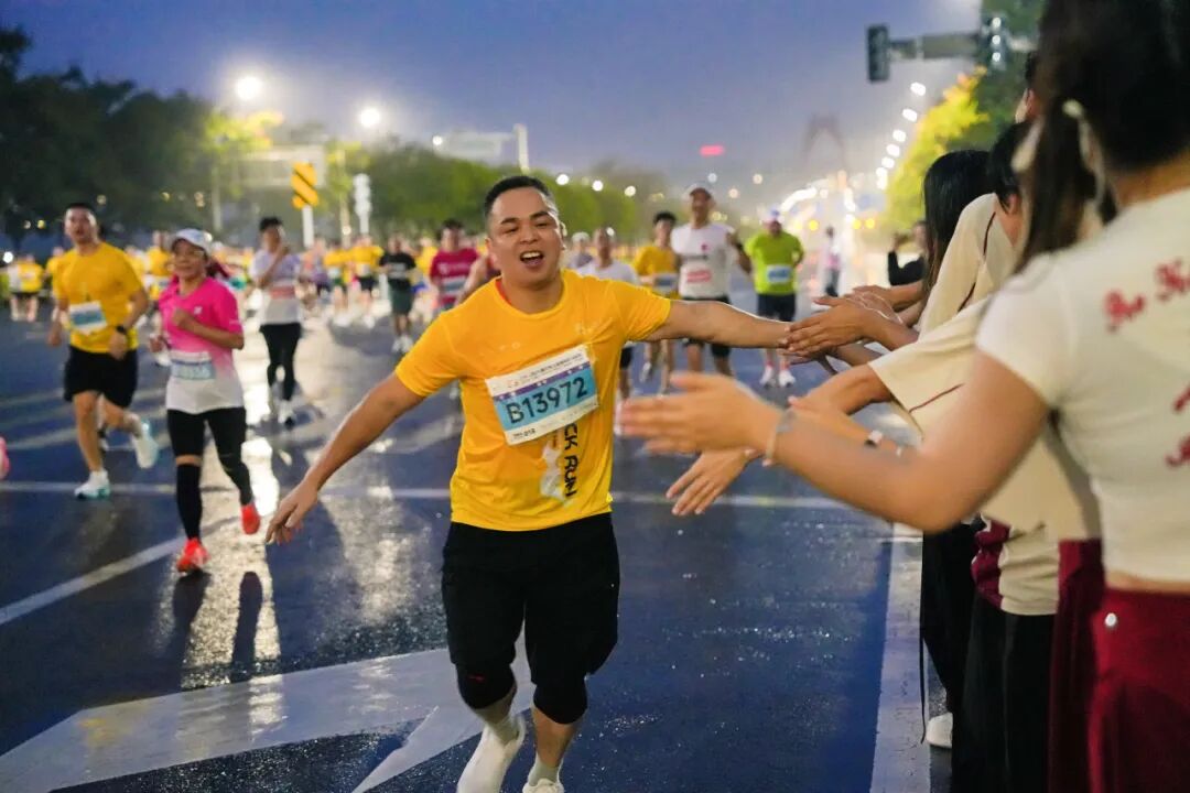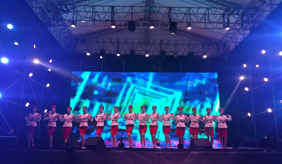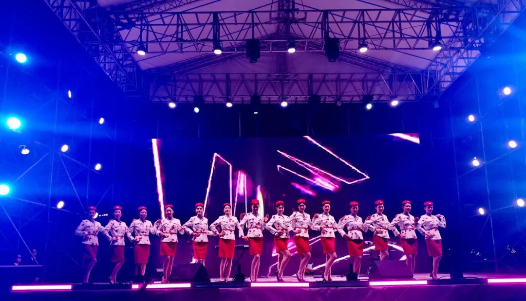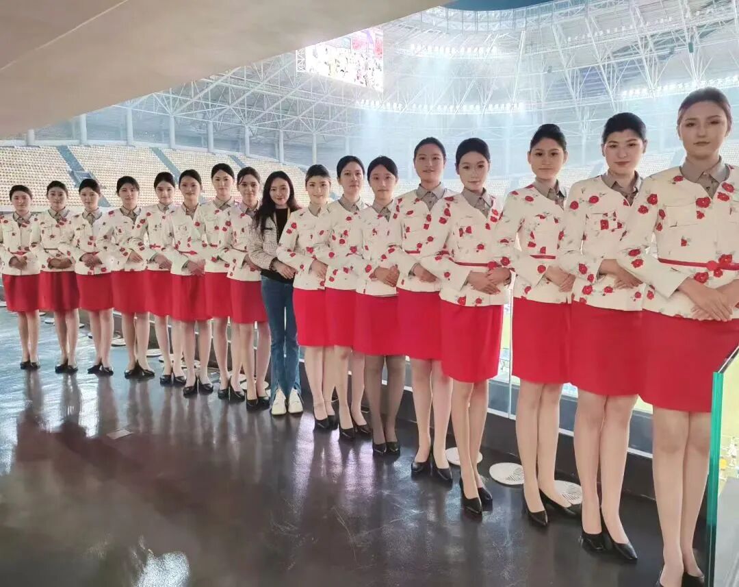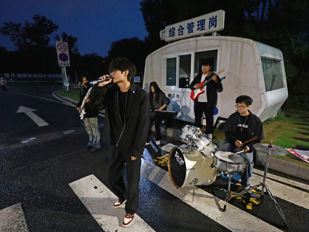 整齐嘹亮的歌声响彻赛道,引发全场共鸣