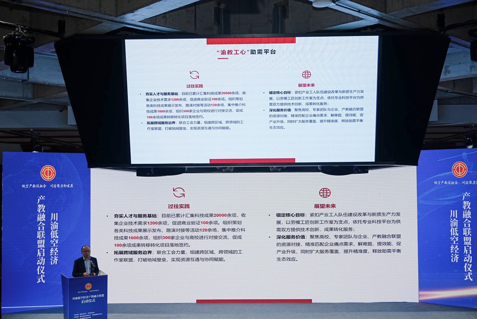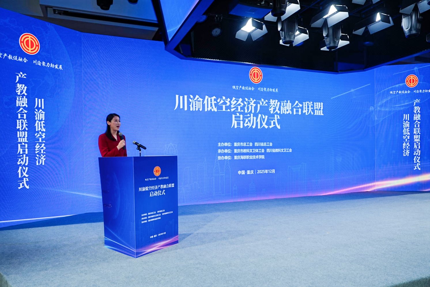 重庆市总工会一级巡视员、市教科文卫体工会主席韩瑞碧在成立大会上指出,低空经济是国家战略性新兴产业,是“航空+”与“数字+”相融合的新赛道。此次川渝两地共同搭建低空经济产教融合联盟,是两地深入贯彻落实党的二十届四中全会精神,抢抓国家低空经济战略机遇,推动区域协同创新的重要实践;也是深化产教融合、培养高素质技能人才、服务新质生产力发展的重要举措。希望两地各级工会、各联盟成员单位要锚定发展坐标,积极参与构建“党委领导、行政主导、工会推动、各方支持、校企合作、联动共赢”的产教融合发展新生态,推动两地低空经济领域教育链、科技链、人才链、创新链协同发展,全面推进工学一体化技能人才培养模式,搭建产业工人“全链式”培育通道,推进劳模创新工作室、技能大师工作室、教学名师工作室与联盟协同联动,开展“引智助企”“研学入企”等活动,促进联盟高效运转,服务产改发展。
