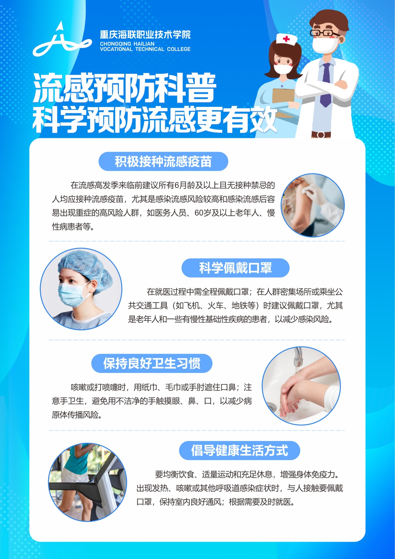 近期,全国多地气温急剧下降,呼吸道传染病进入高发时期。中国疾病预防控制中心监测数据表明,甲型 H3N2 流感毒株成为当前流感季的主流毒株,感染人数可能呈现增长态势。学校作为人员密集场所,极易成为流感传播的“温床”。为保障师生的身体健康,维护正常的教学秩序,我们需携手构建抵御甲型流感的“防火墙”,营造健康、安全愉悦的学习环境。