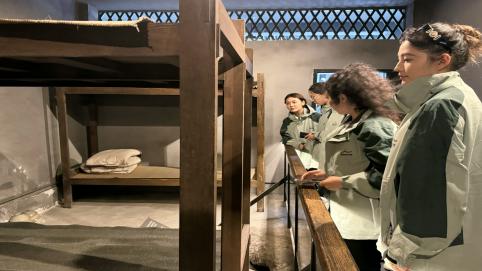最后,同学们来到江姐当年的牢房。简陋的床铺、逼仄的空间,无声地诉说着江姐曾经历的苦难。同学们伫立于此, 仿佛能感受到江姐面对残酷囚禁时的坚定与不屈,对革命先辈的敬意在心中愈发深沉。