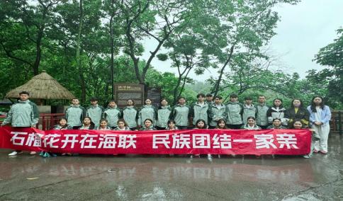 参观结束后,师生们齐聚在渣滓洞前。在雨中撑起“⽯榴花开在海联民族团结—家亲”的红色横幅,定格下这意义非凡的瞬间。此次红岩革命历史博物馆之行,为同学们上了—堂生动的思政课,激励着他们传承红色精神,在民族团结的大道上携手奋进。