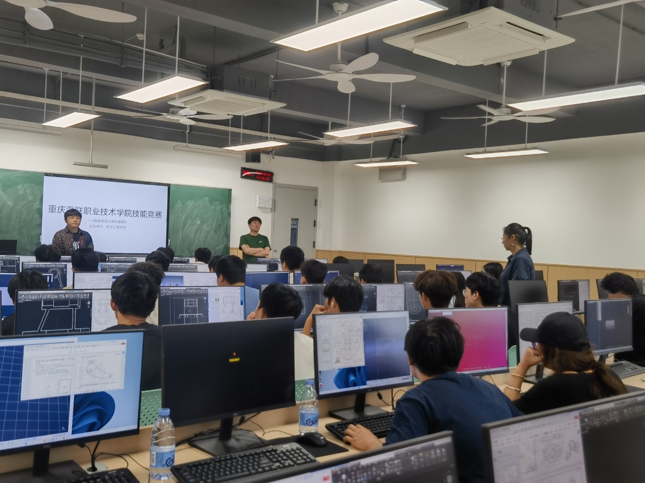同日,在T1301教室内,另一场以“智能制造计算机建模”为主题的CAD及CATIA绘图技能竞赛精彩上演。数十名学生汇聚一堂,在电子钟的倒计时中展开激烈角逐。