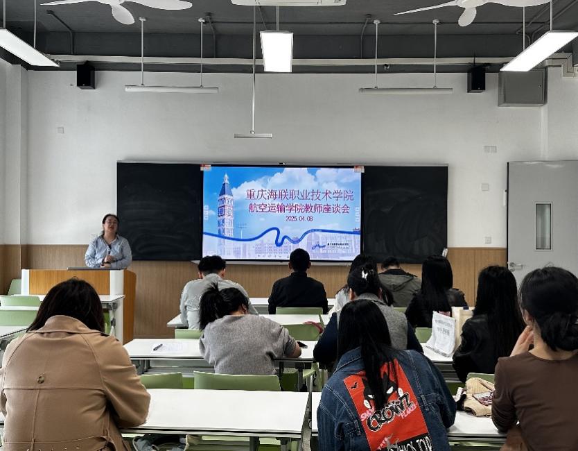 2025 年月 4 月 8 日下午,航空运输学院龙兴校区T1教学楼1118教室组织召开 2024-2025 学年第二学期上半学期教师座谈会,学院教学分管领导王春利主持会议。