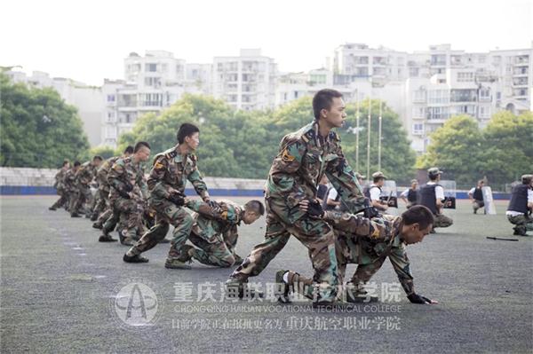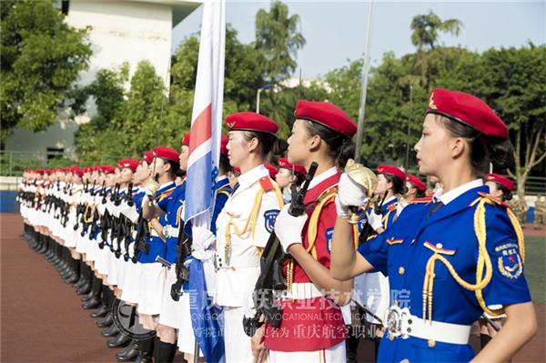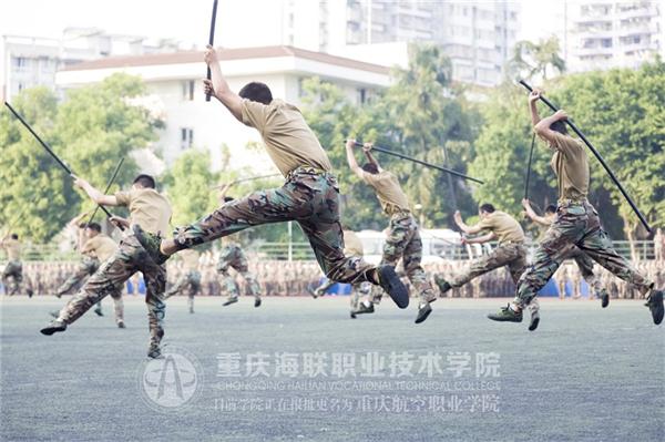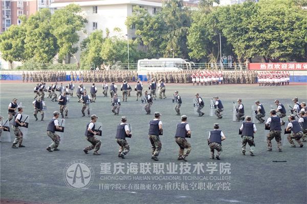座谈会后,湖南一行人在院领导等人的陪同下观摩了我院2016级新生军训表演。首先出场的“烈焰国旗护卫队”和重庆首支高校女子仪仗队“凌云女子仪仗队”的亮相让来宾们眼前一亮。随后,针对民航需要的机场反恐徒手格斗、机场反恐战术综合训练、安保应急棍运用技术、机场反恐和客舱一招制敌综合训练等特色节目则让来宾赞不绝口,纷纷表示“耳目一新,特色十足”,最后进行的队列动作综合训练,由800名新生精英组成的庞大队伍,展现了海联现代绅士与淑女的综合素养,场面宏大、壮丽,赢得了现场来宾们的阵阵掌声。
