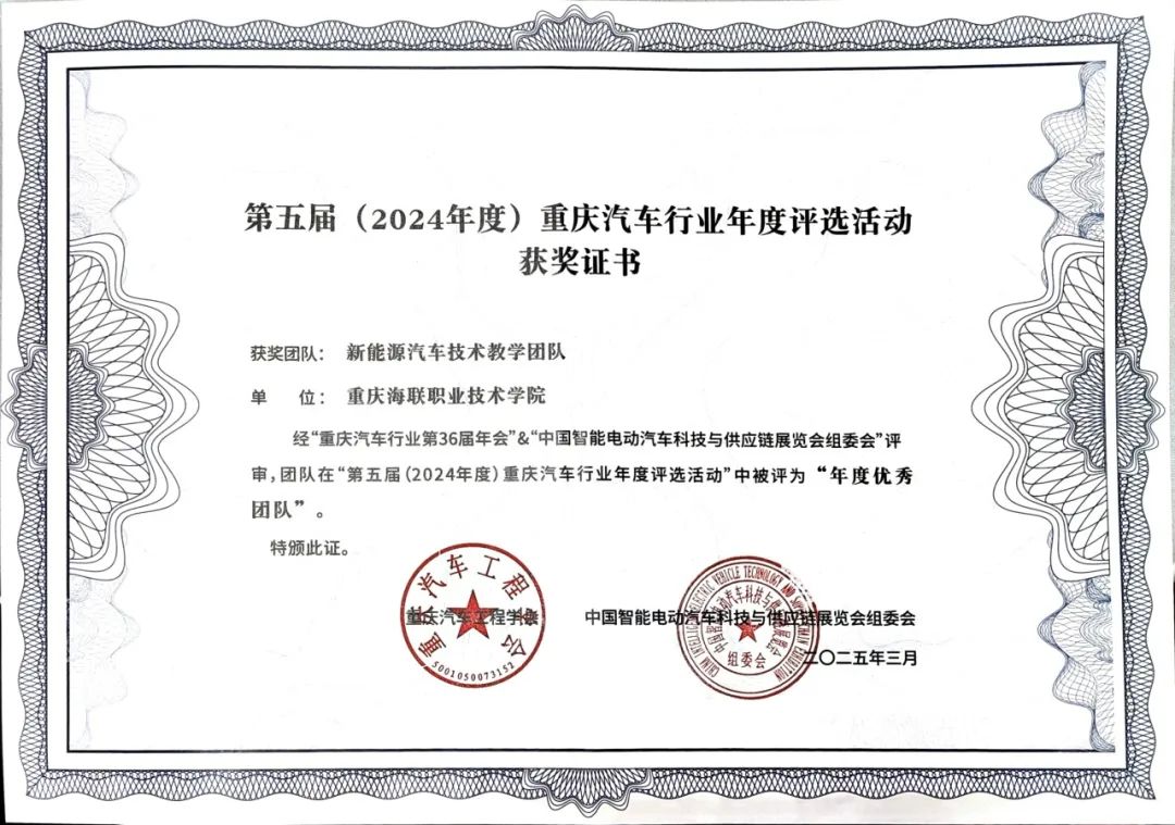 此次买球官网荣获重庆市汽车工程学会“年度优秀团队”,是重庆市高职院校唯一获得表彰的团队,也是学校新能源汽车技术教学团队的新起点。未来,团队将不断深化教育教学改革,加强师资队伍建设,提升教学质量和科研水平。同时,团队将进一步加强与企业的深度合作,积极探索产教融合新模式,为新能源汽车行业培养更多高素质的技术技能人才,助力重庆“世界级智能网联新能源汽车产业集群”建设和汽车产业高质量发展。