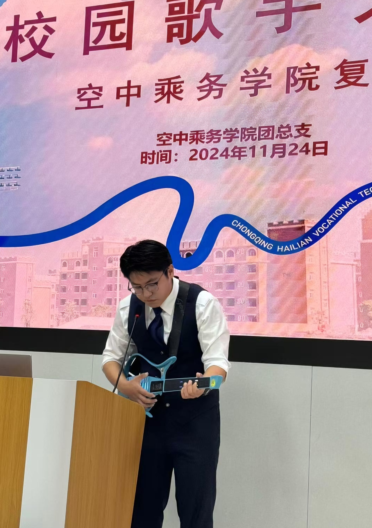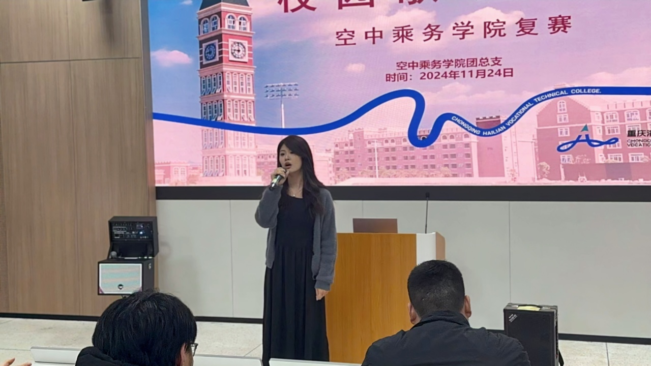 空中乘务学院联系领导邓斯琼女士充分肯定了本次比赛的举行意义,同时也表达了对参赛选手的期待,能在歌声中唱出与众不同的风采,这激励的话语让大赛的现场达到了高潮。