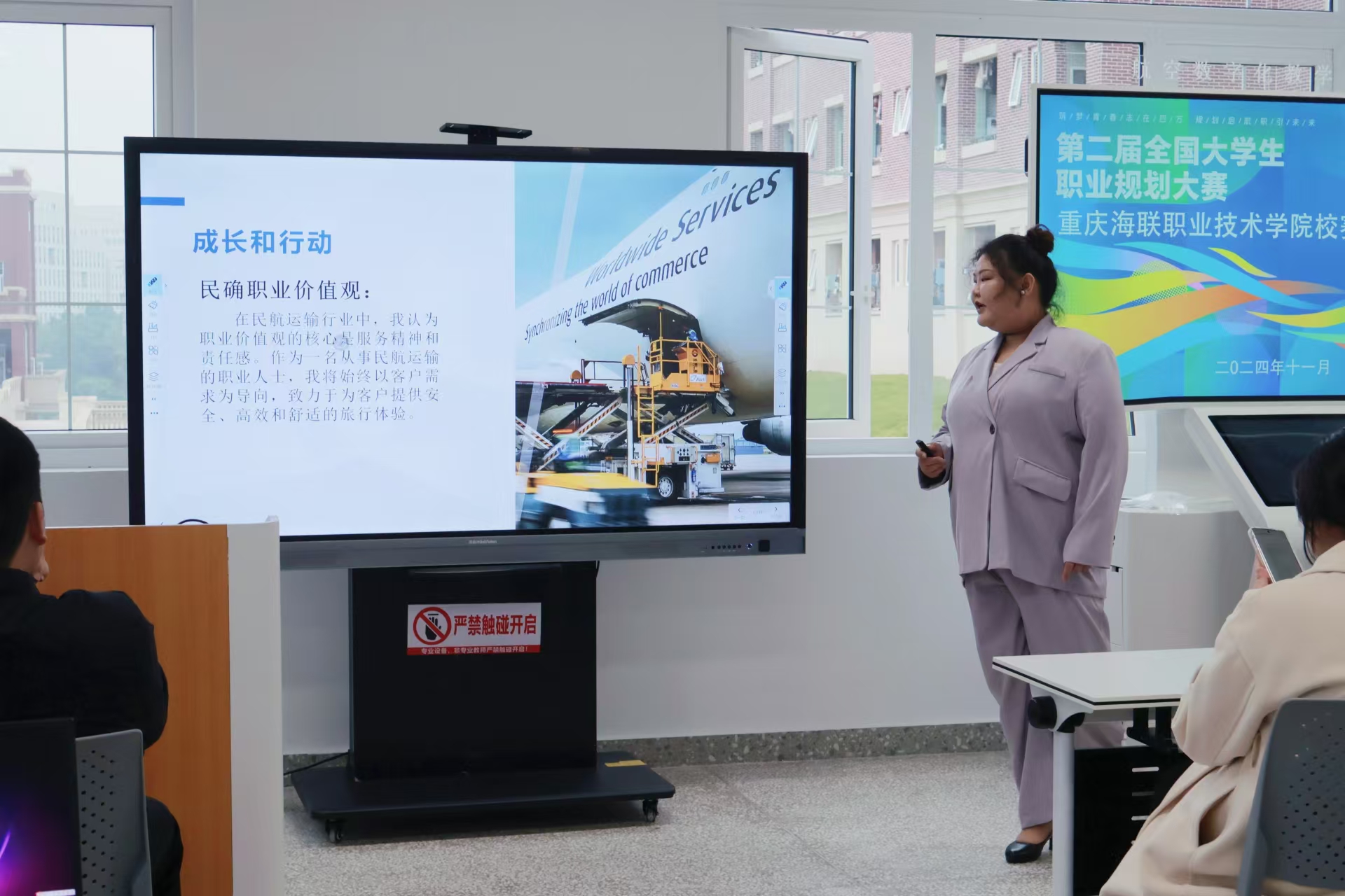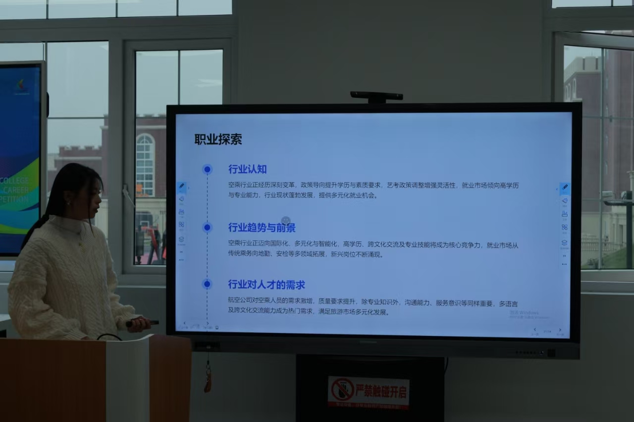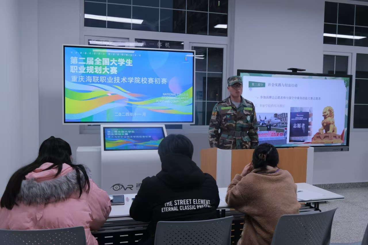 筑梦青春志在四方,规划启航职引未来。为切实增强学生职业规划意识,引导学生树立正确的成长成才观和择业就业观,促进高质量充分就业、空中乘务学院于T2实训楼VR教室举办职业规划大赛初赛。