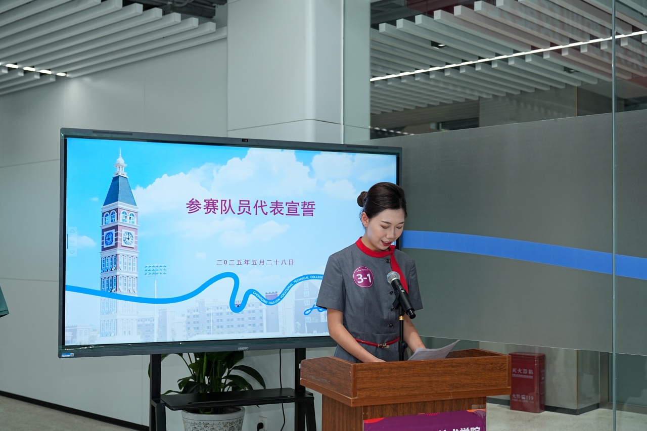 参赛队员代表张艳秋同学在宣誓环节中,郑重承诺将严格遵守比赛规则,秉持诚信、拼搏的精神,全力以赴参与竞赛。
