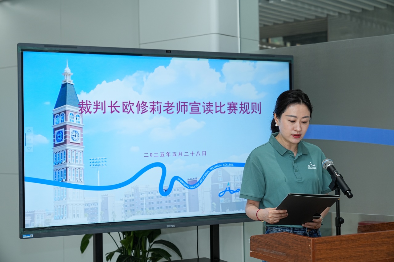 裁判长欧修莉老师详细宣读比赛规则。她指出,规则的制定旨在确保竞赛的公平、公正、公开,让每一位参赛选手都能在同等条件下充分展示自己的专业技能和职业素养。