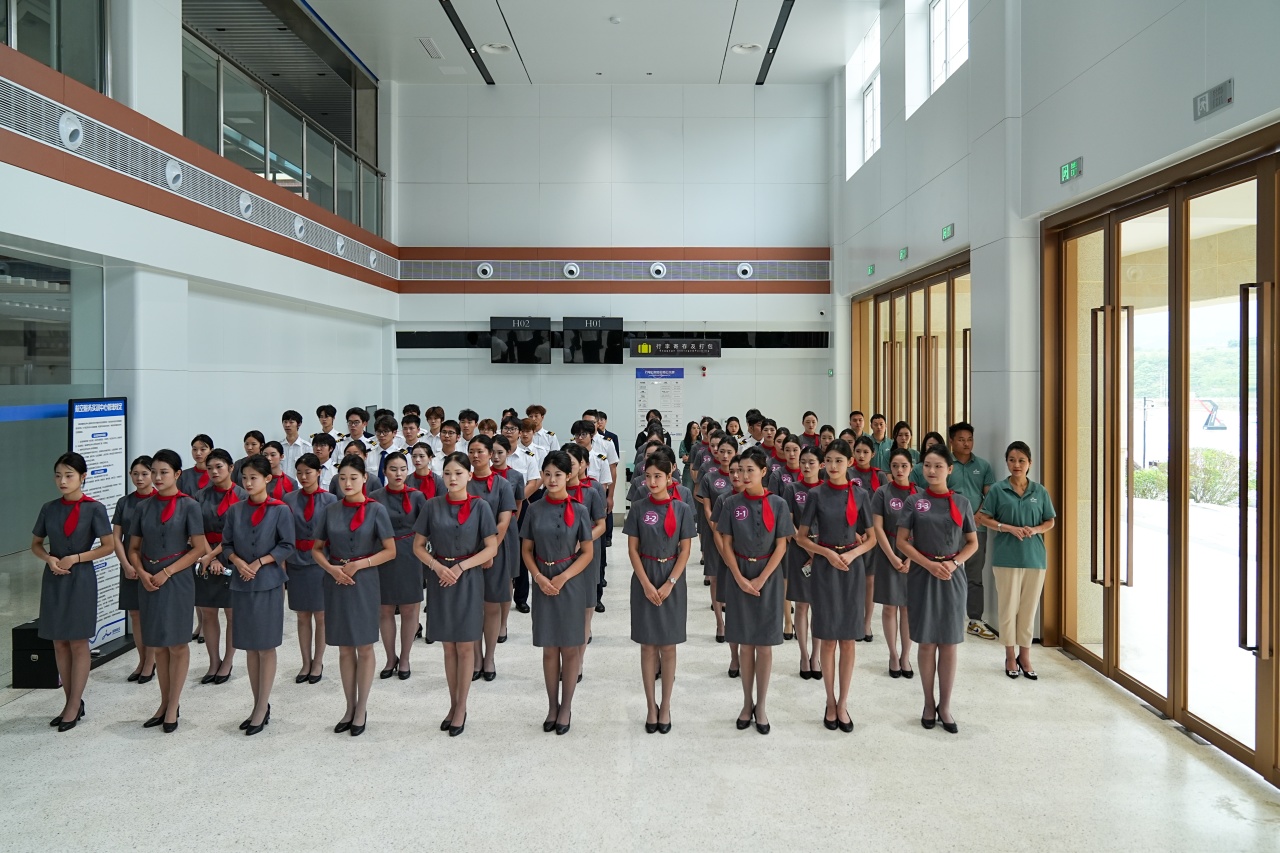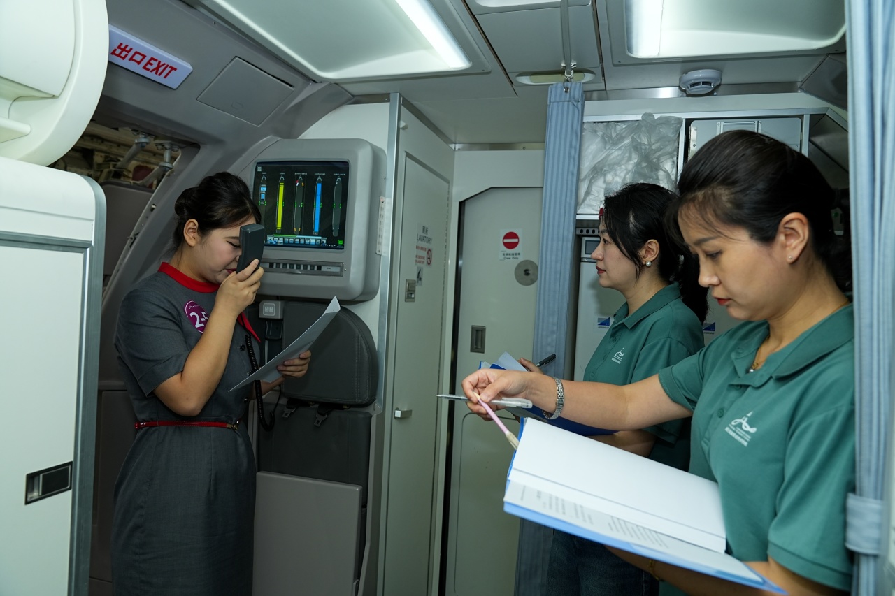 近日,学校在T2实训楼举行2025年空中乘务职业技能竞赛开幕式。学校常务副校长李慧民、校长助理邓斯琼,学生处处长张鹏、教务处副处长胡云华,,空中乘务学院院长陈洁、支部书记刘奕成、副院长牛金鑫出席开幕式,空中乘务教研室全体教师,100余名学生代表参加开幕式。