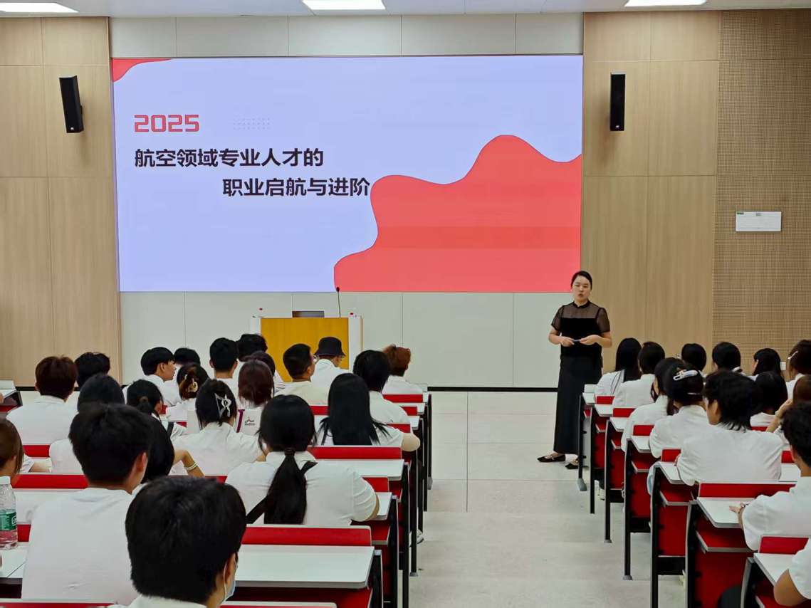 聚焦航空人才培养:空中乘务学院院长陈洁、副院长牛金鑫分别对2025级新生就《航空领域专业人才的职业启航与进阶》组织了专题分享与指明发展方向