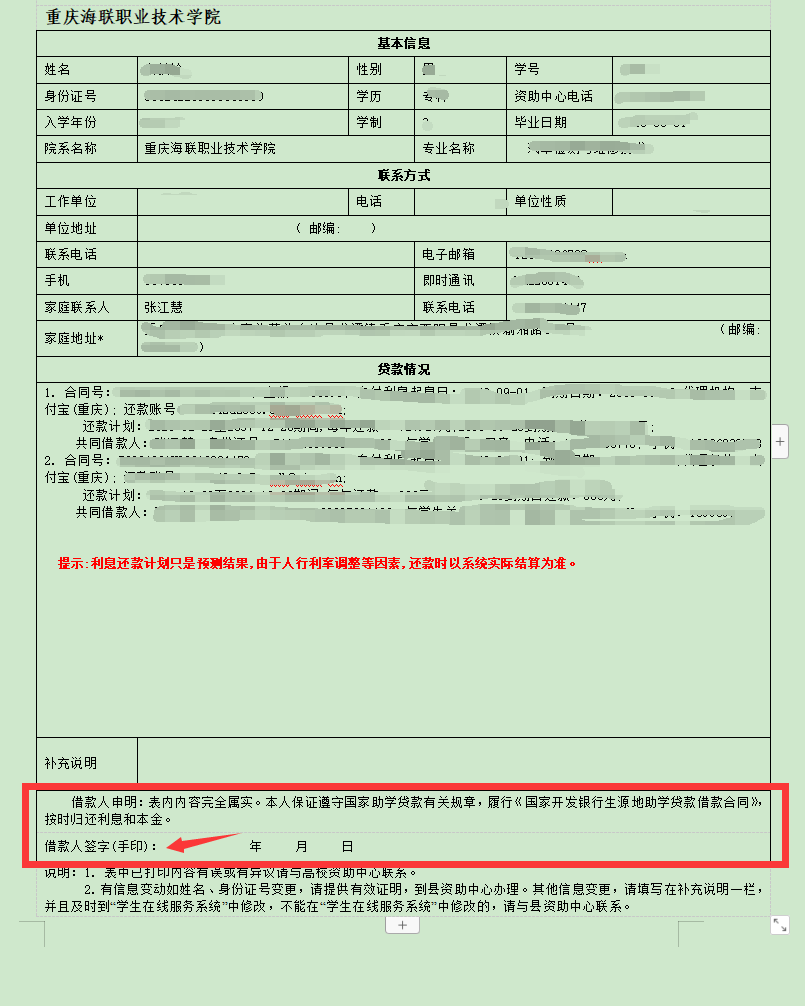 贷款学生务必按照《借款合同》约定,自觉履行还款义务,避免因贷款发生逾期影响个人征信。
