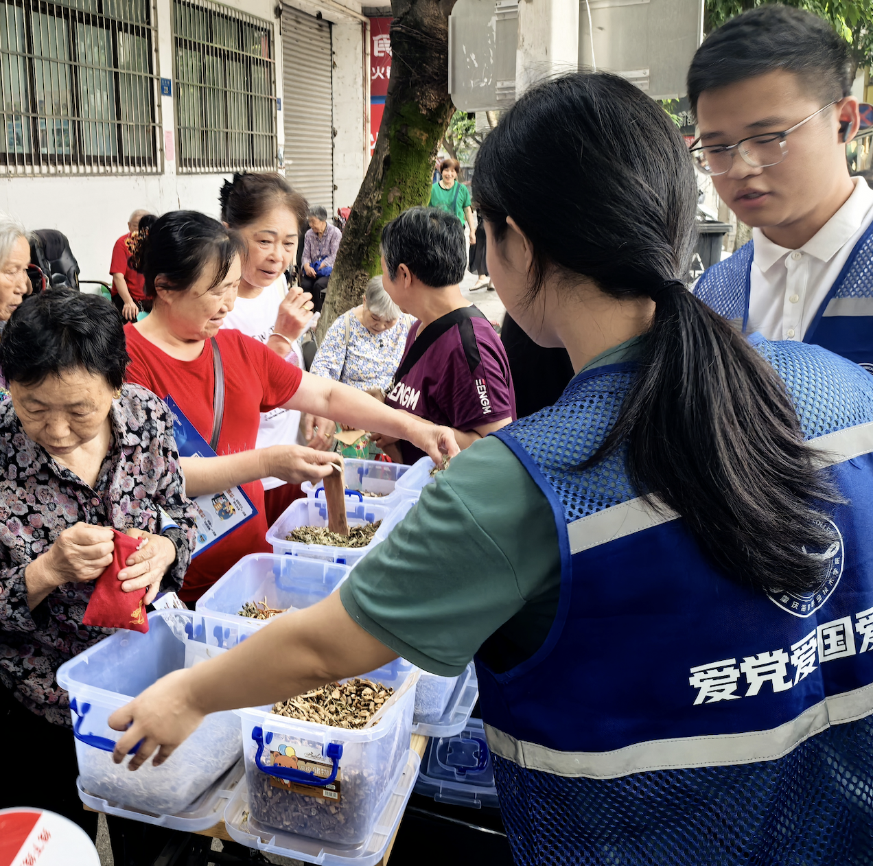 香囊手作区里,阵阵药香伴着欢声笑语。志愿者们和居民围坐在一起,穿针引线、填充香料,一个个精致的香囊在手中诞生。大家边做手工边聊家常,分享着生活中的趣事,浓浓的温情在指尖流转。