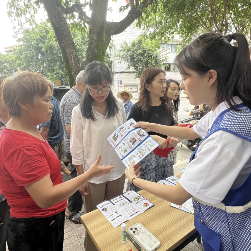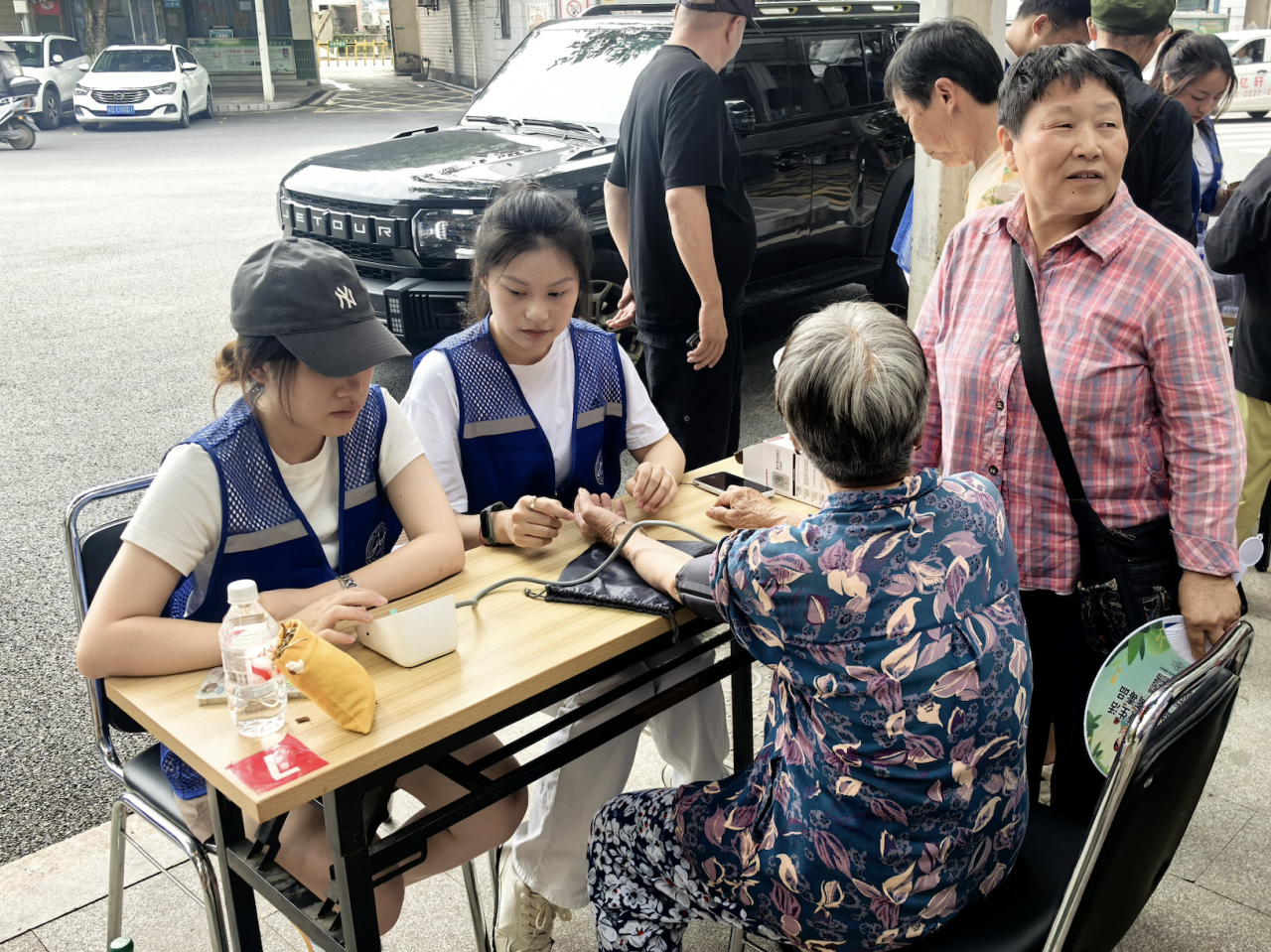 此外,志愿者们还贴心地为居民提供免费血压测量服务,精准对接社区居民在健康与安全方面的迫切需求。测量时的一句句细心叮嘱、记录数据时的一次次认真核对,无不饱含着对居民健康状况的深切牵挂。志愿者们以专业素养为依托,将课堂所学转化为服务民生的暖心行动,让社区居民切实感受到了来自青年学子的关怀与担当。